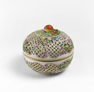 4493. Bonbonnière à motif de fleurs, fretel fraises et croisillons ajo...