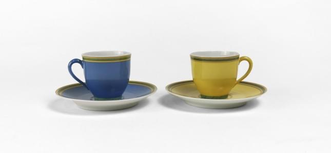 4497. Deux tasses bleues et jaunes