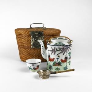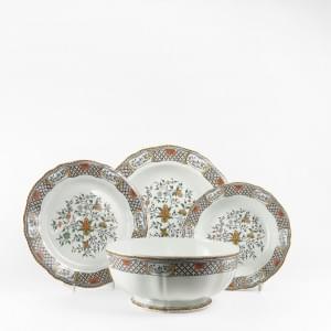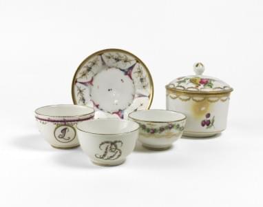 4510. Sucrier et 3 tasses à décor de guirlandes et fleurs