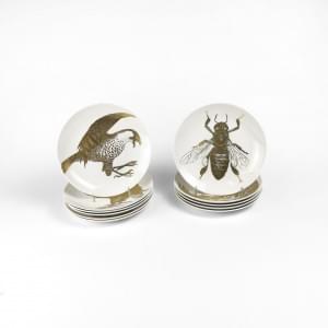 4513. Suite de 11 assiettes à décor d'animaux, Arter i fara gräsäl,