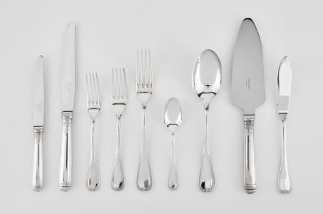 Christofle, métal argenté, comprenant: 12 fourchettes, 12 cuillè...
