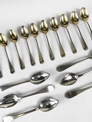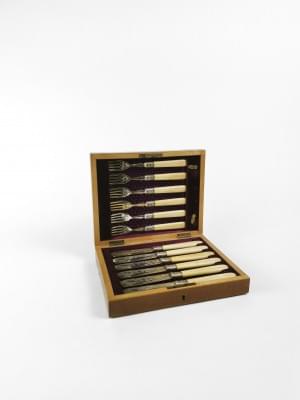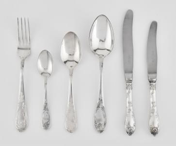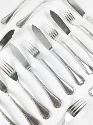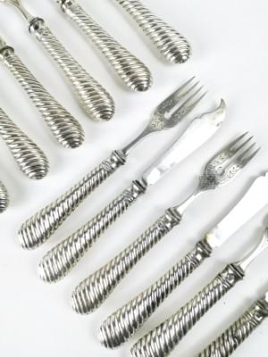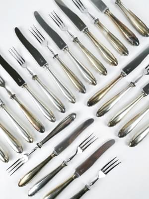 Jezler, argent, 12 fourchettes et 12 couteaux à dessert
