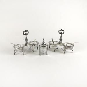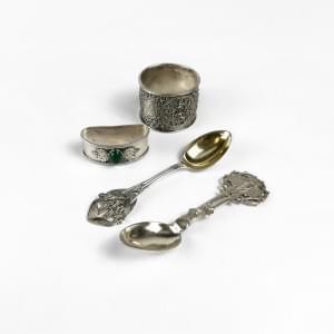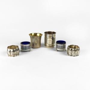 4552. 2 timbales, 2 salerons 2 liens de serviettes