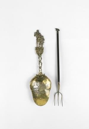 4553. Fourchette sommée d'un ourson et cuillère Guillaume Tell