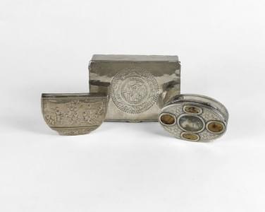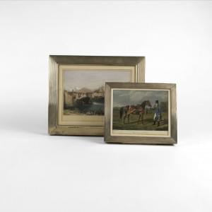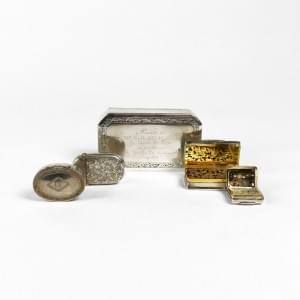 4566. Deux boîtes à cigares en argent encadrant une gravure