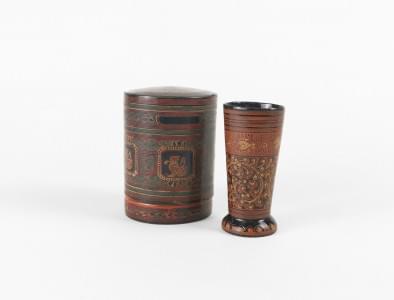 Laque de Cinabre à motif stylisé, D 7,5 cm