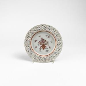 Porcelaine à motif d'un vase fleuri, marli ajouré, D 22 cm
