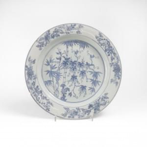 Porcelaine émaillée bleu blanc à décor de bambous, D 35 cm