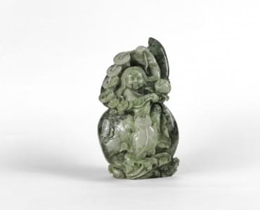 4731. Trois statuettes figurant un immortel et deux enfants, Chine