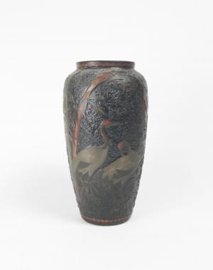 Céramique et émail à motifs d'échassiers, H 30 cm