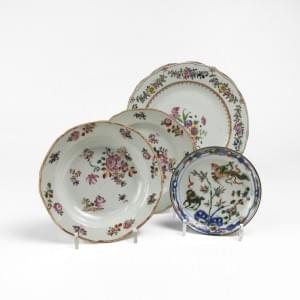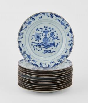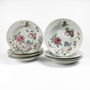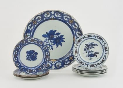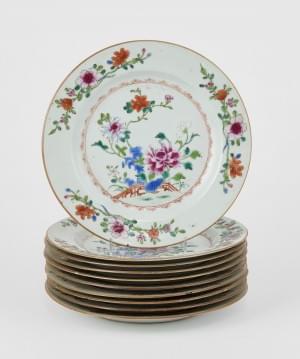 4863. Grand plat et dix assiettes, Chine, Compagnie des Indes, XVIIIe...