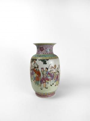 Porcelaine émaillée polychrome à décor de huit personnages, D 8,...