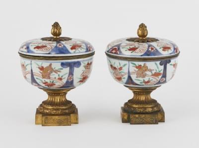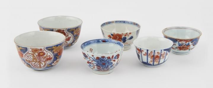 4835. Six tasses et sous-tasses et un bol couvert, Imari, Chine, XVIII...