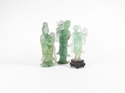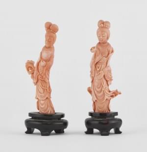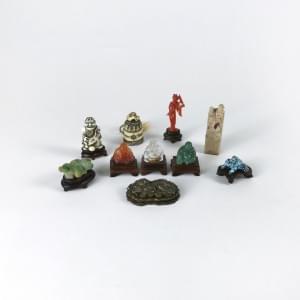 Pierres diverses, corail, bois et ivoire, H de 2 à 7,5 cm.