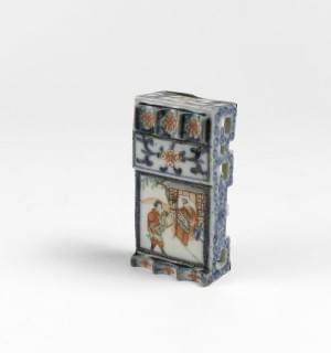Porcelaine émaillée bleu rouge et or à motif d'un rouleau figura...