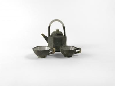 Porcelaine émaillée turquoise, H 11,5 à 15 cm