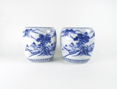 Porcelaine bleue et blanche à décor de paysages, H 24 cm