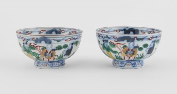 Porcelaine émaillée polychrome, D 6 et 9 cm