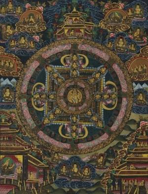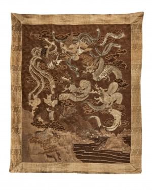 Soie à décor de dragons, phénix et kilins, 255x210 cm.