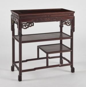 Deux tablettes, ceinture ajourée, bois au naturel, 77x71x73 cm