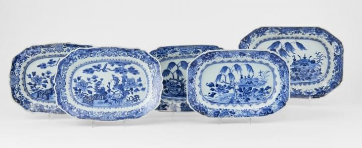 4894. Suite de cinq plats ovales, Chine, Compagnie des Indes