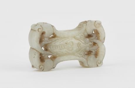 Jade sculpté et ajouré de fleurs, 16x43x8 cm