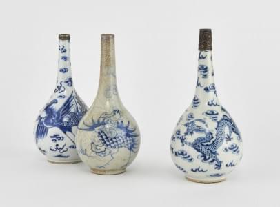 4908. Trois vases en forme de bouteille, Chine pour le marché vietnami...