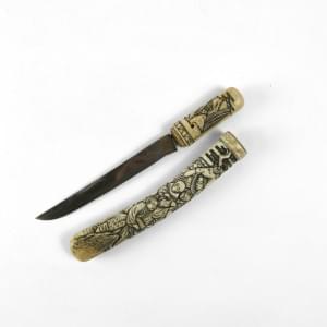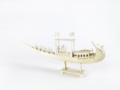 Ivoire sculpté, laque et nacre, L 18 é 34,5 cm