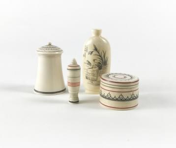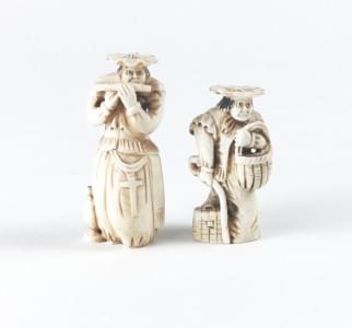 Ivoire sculpté, gravé et peint, H de 3 à 5 cm