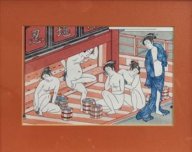 Porcelaine émaillée polychrome à décor de geishas, D 13 cm