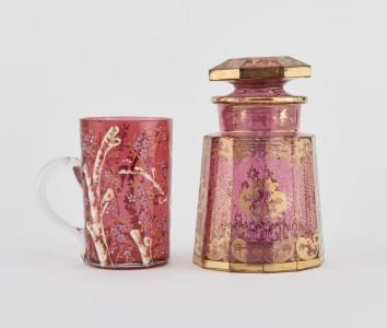 Verre rubis à décor émaillé et doré, H 11 et 15 cm