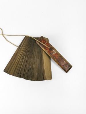 Scène de prière dans un jardin, pigments sur papier, 34x22 cm