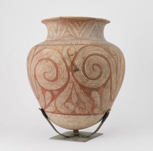 Terre cuite à décor de tourbillons à l'engobe rouge, H 52 cm