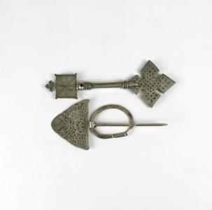 Dont partie d'étendard au bouquetin, bracelet, mors et vases, di...