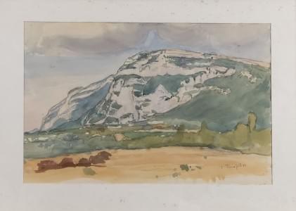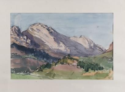 Vue sur les Alpes, aquarelle sur papier, signée et datée 51, 34x...