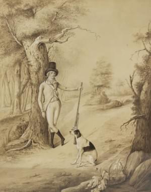 Portrait présumé de M. Buisson en tenue de chasseur, lavis sur p...