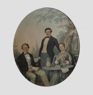 Portrait de la famille Bindschedler, aquarelle sur papier, signé...