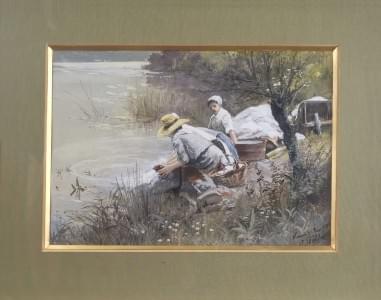 Les lavandières à Verneuil-sur-Seine, aquarelle, signée et datée...