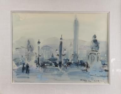 Place de la Concorde et Notre-Dame, deux aquarelles, signées, 46...