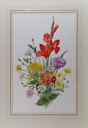 Deux bouquets de fleurs, crayon et aquarelle sur papier, 53x34 c...