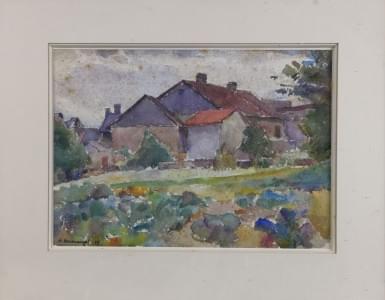 Ferme et jardin, aquarelle sur papier, signée et datée 1919, 24x...