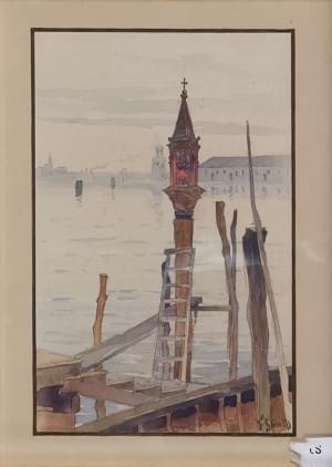 Vue portuaire, crayon et aquarelle sur papier, signé, 21,5x15 cm