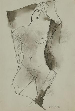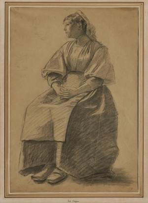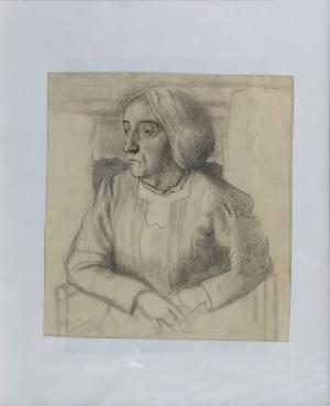 Portrait d'une femme assise, crayon et encre sur papier, 31x29 c...
