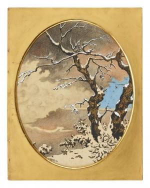 Arbre enneigé, aquarelle et gouache sur papier, signée, 39x31 cm