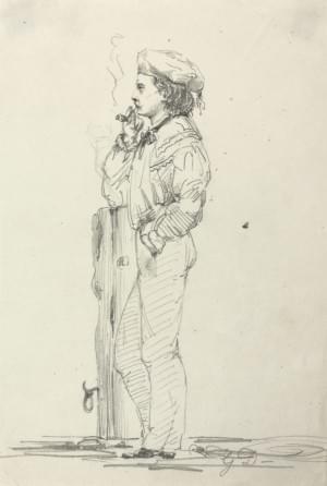 Le fumeur de pipe, mine de plomb sur papier, 17,5x11,5 cm