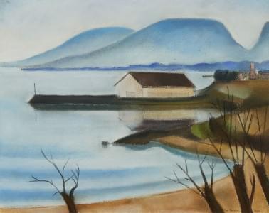 Bord du lac, aquarelle, signée et datée, 1927, 32x41 cm