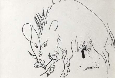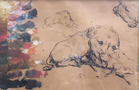 Etude de lions, encre et gouache sur papier, 23x35 cm
