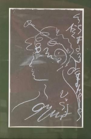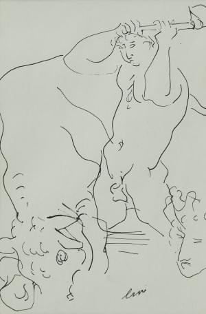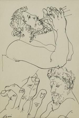 Joueur d'aulos, encre sur papier, signée, 19x13 cm