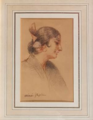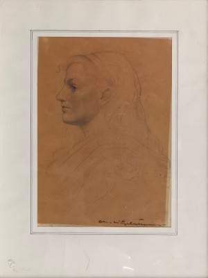 Portrait de femme, crayon noir et sanguine sur papier, signée, 2...