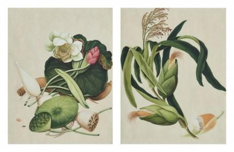 Maïs et Nénuphar, aquarelle et gouache sur papier, 46x36 cm.